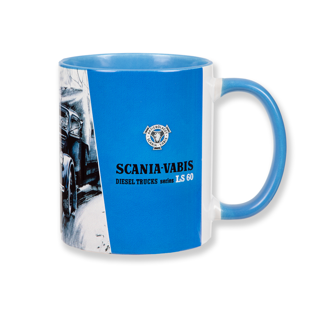 Details: A nod to our rich history, this mug is branded with iconic Scania Vabis Herritage imagery. Rim, handle & inside matching mugs. 100% dishwasher proof.