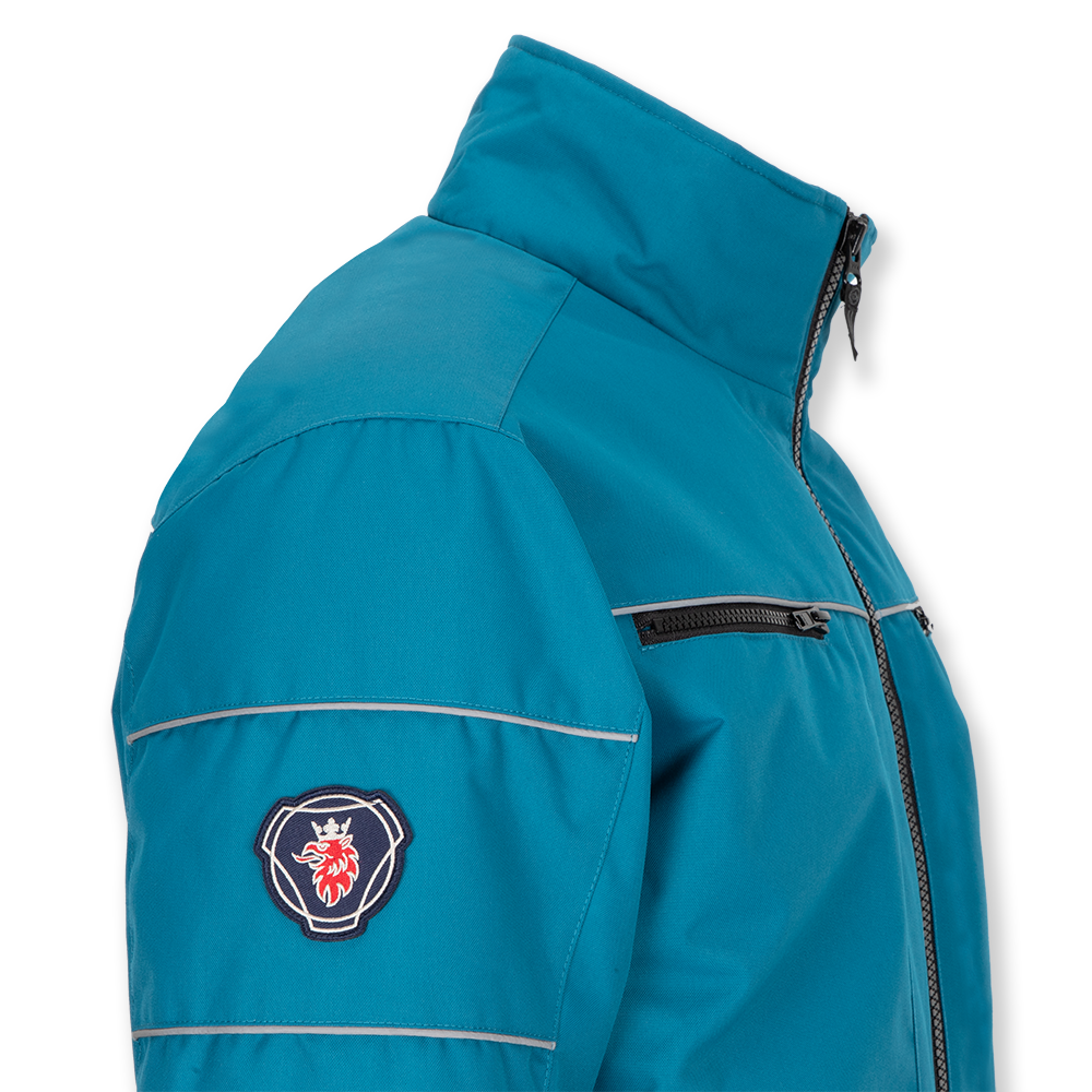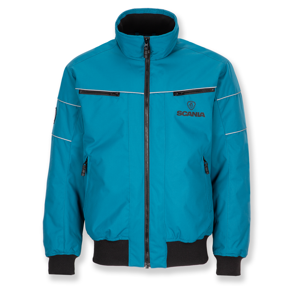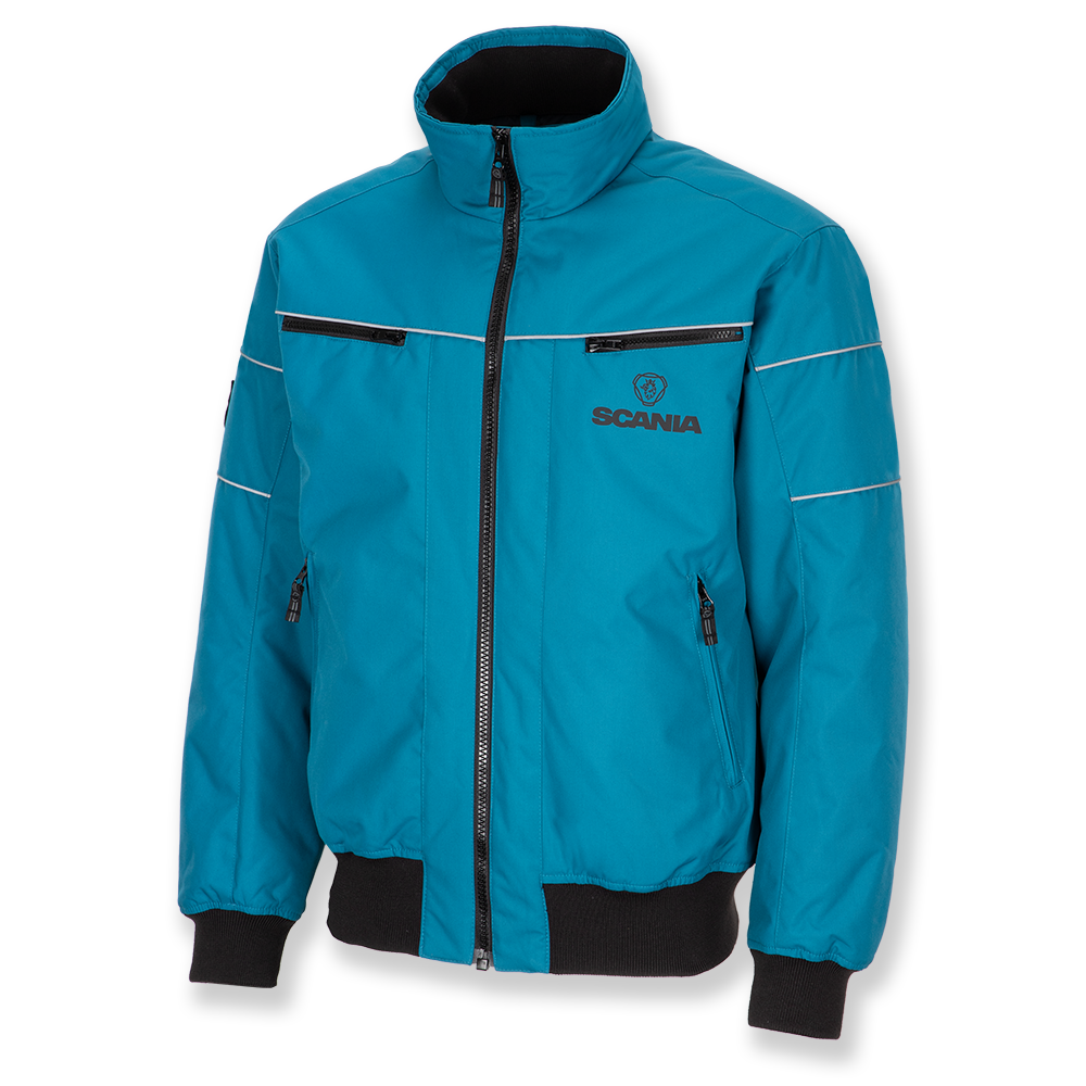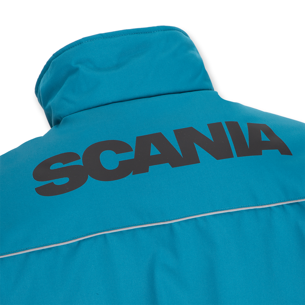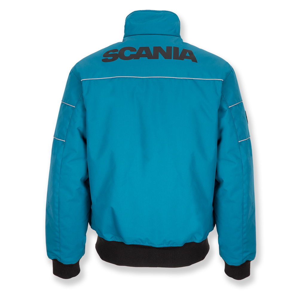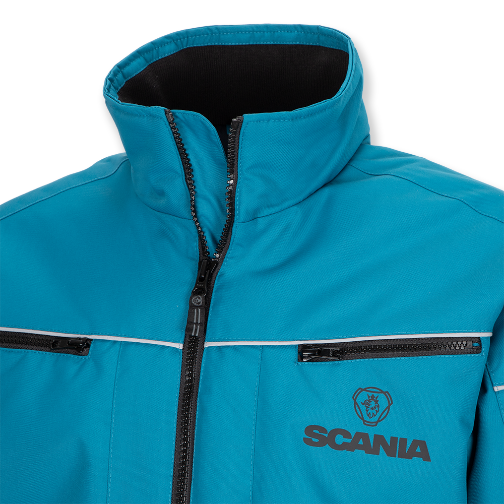 Details: Scania wordmark print on back, Scania logotype print on chest. Reflective piping on back and front and on sleeves. Robust zippers and pockets with zip closure outside and inside.