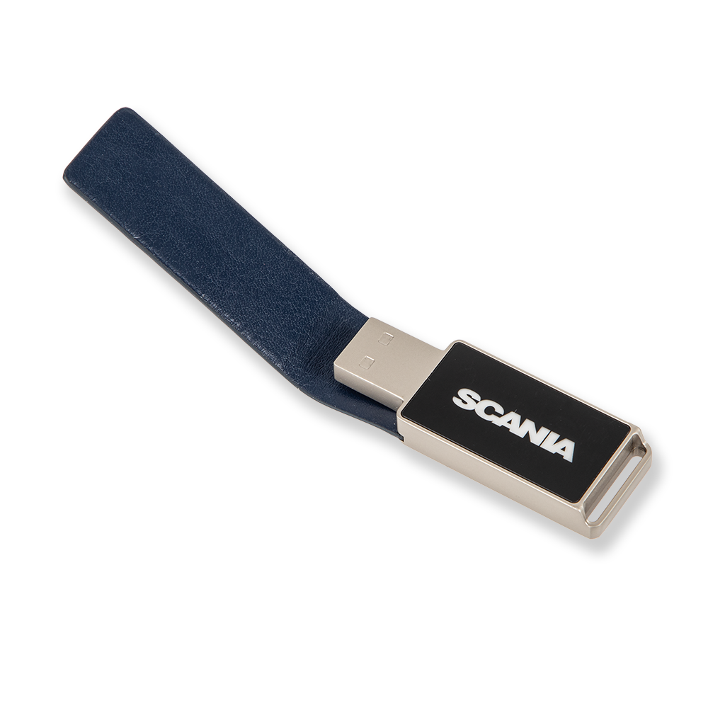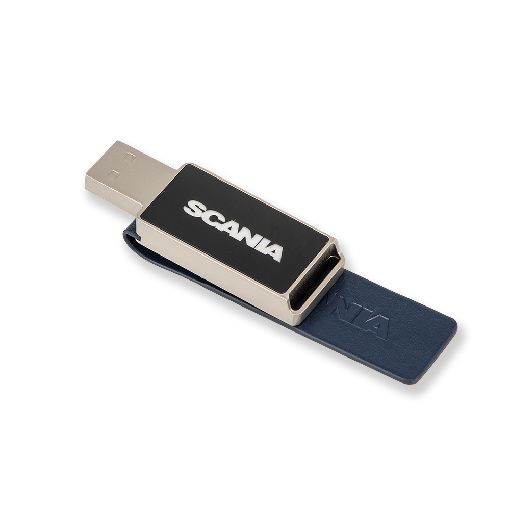Details: LED Flashdrive. Pantone matched body. Etched with the Scania Wordmark.