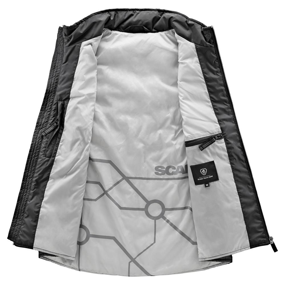 Details: Reflective Scania symbol on front, reflective Scania wordmark on neck. Reflective pipings on shoulder seams, two-colour zippers, contrast colour lining.