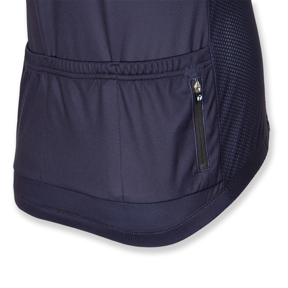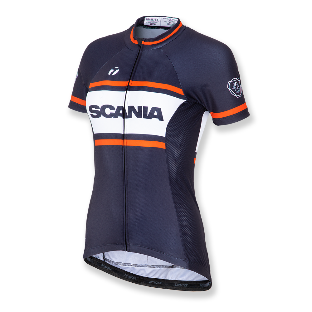 Details: Snug-fitting jersey shirt, that sits close to the skin for reduced air resistance. Scania symbol on sleeve, Scania wordmark on the chest. Robust zippers and three pockets on the back. Elastic dropped hem to the back.