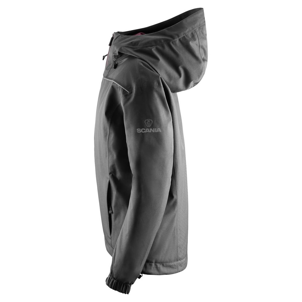 Details: Taped seams, contrast colour zippers, one hand pull drawstrings, hidden drawstrings in hood. Velcro adjustable sleeve end. Reflective print. Scania symbol on sleeve and Griffin graphic on back.