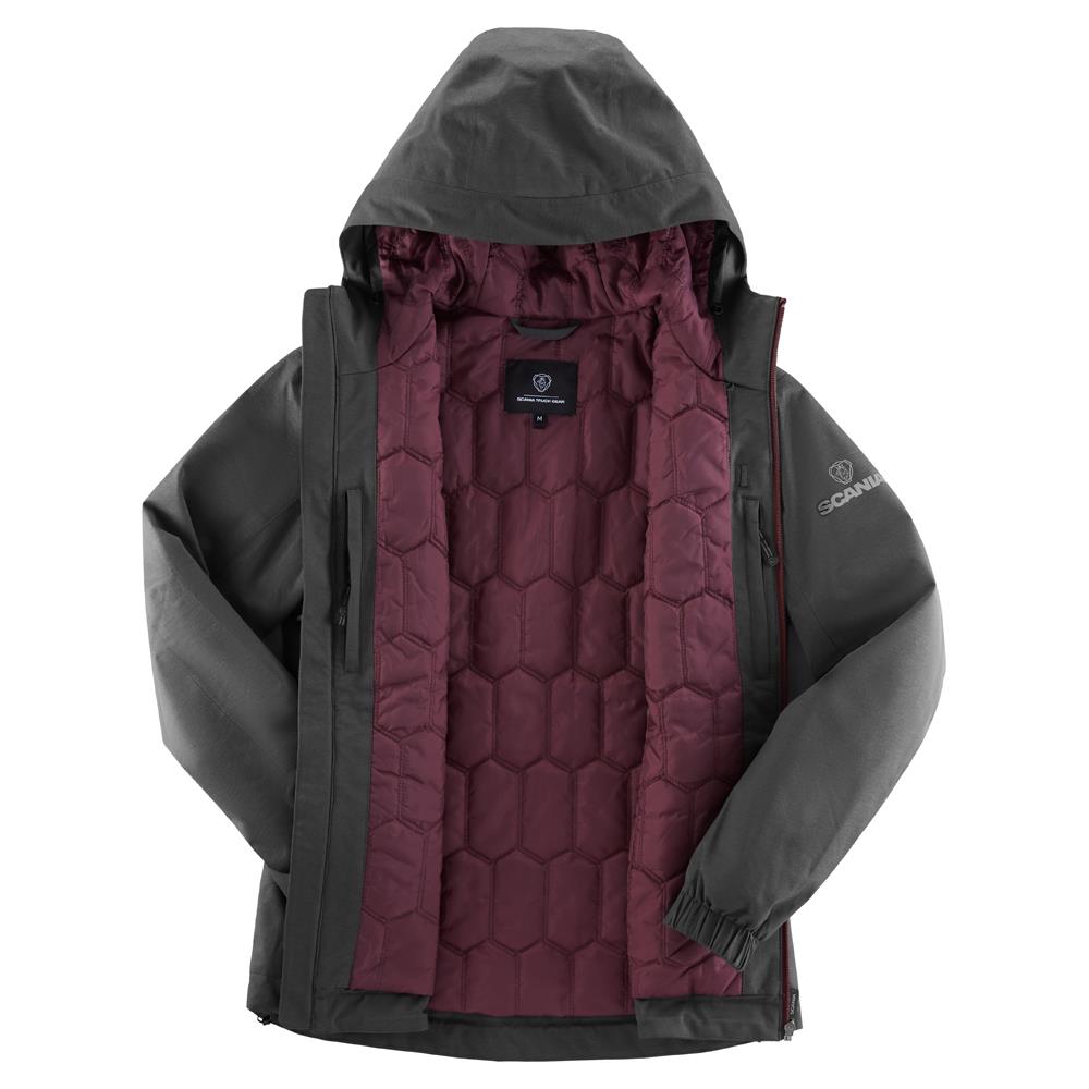 Material: Padding: 50% recycled polyester, 50% polyester. The pattern in the padding is inspired by the Scania truck grille. Shell fabric: 55% polyester, 45% recycled polyester, WR 10K/10K WP/MP. Lining: 100% nylon.