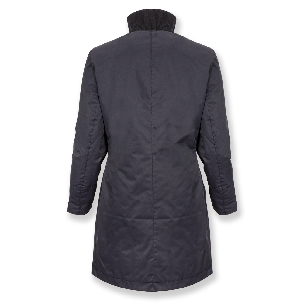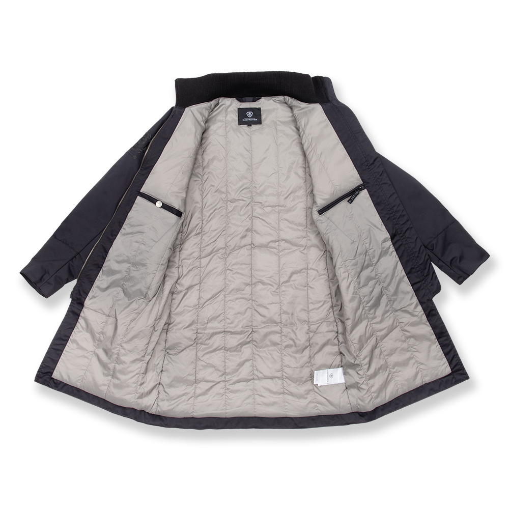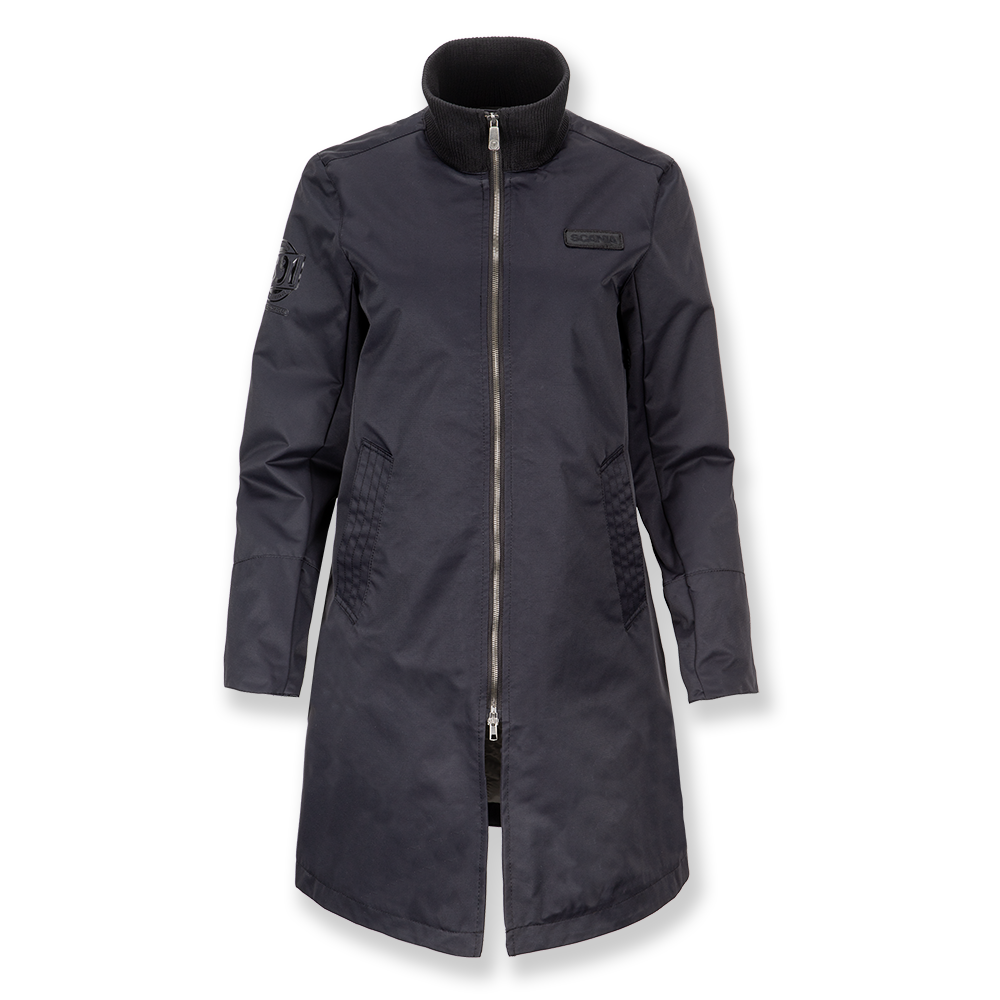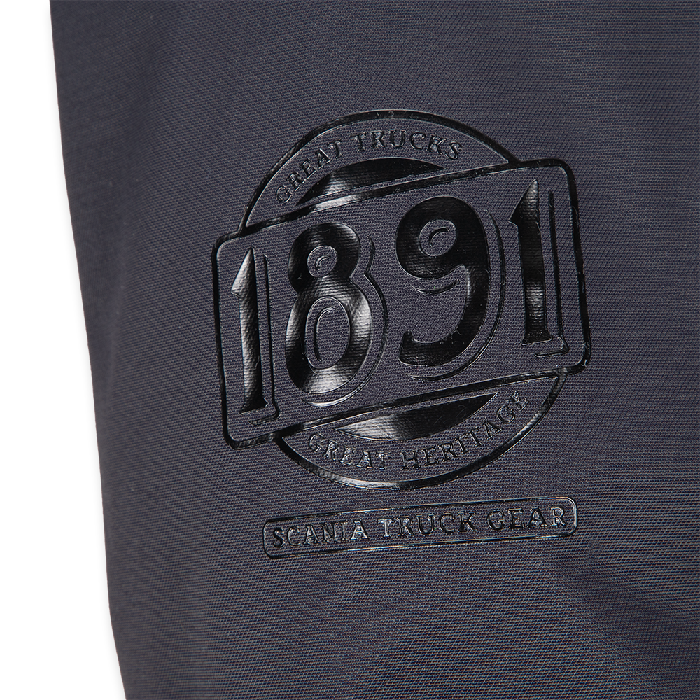 Straight, fitted coat with rib-knitted collar. Scania logo badge on the chest, embroidered cropped griffin on the back, rubber print on sleeve, all tone in tone. Shell: 100% nylon. Lining: 75% nylon, 25% polyester.