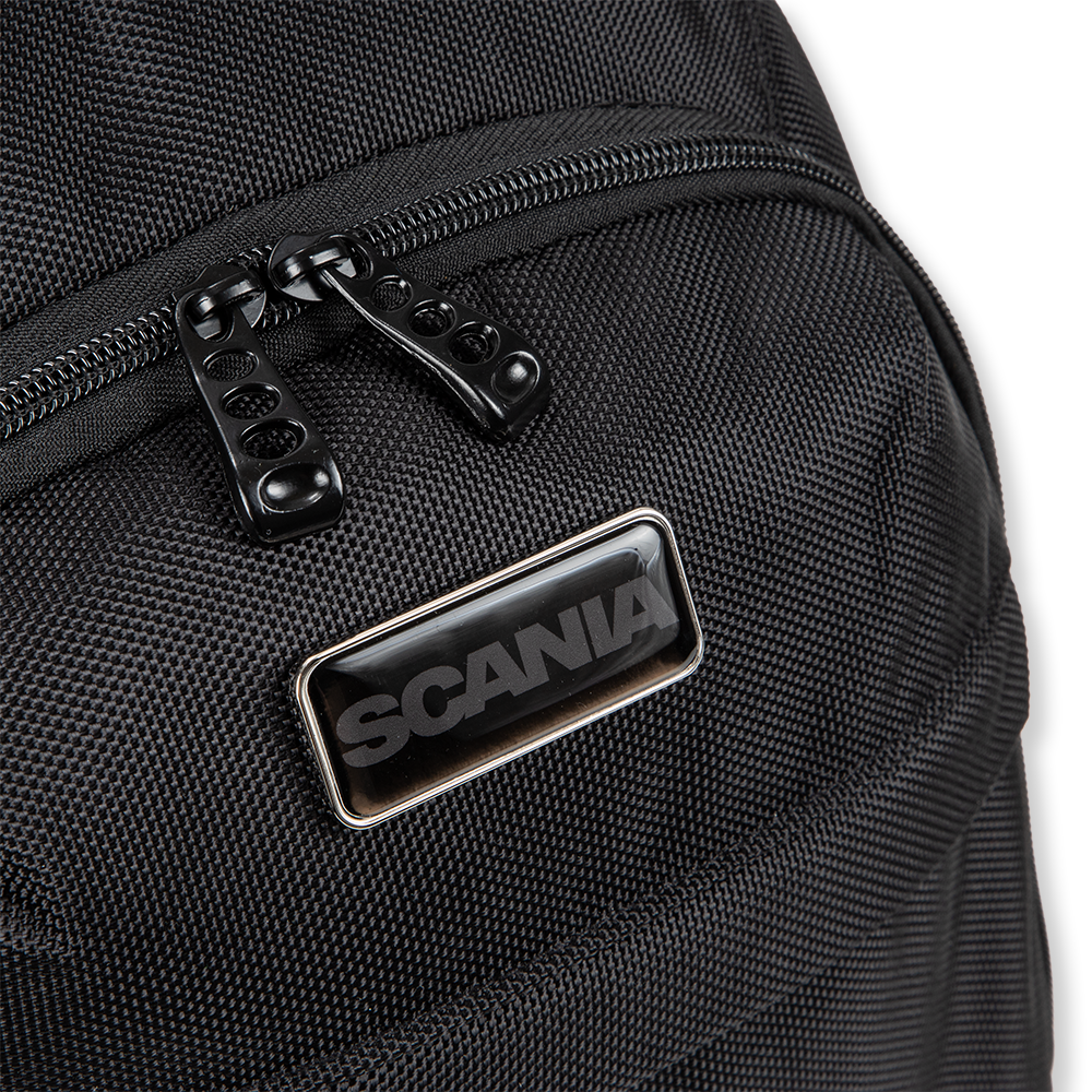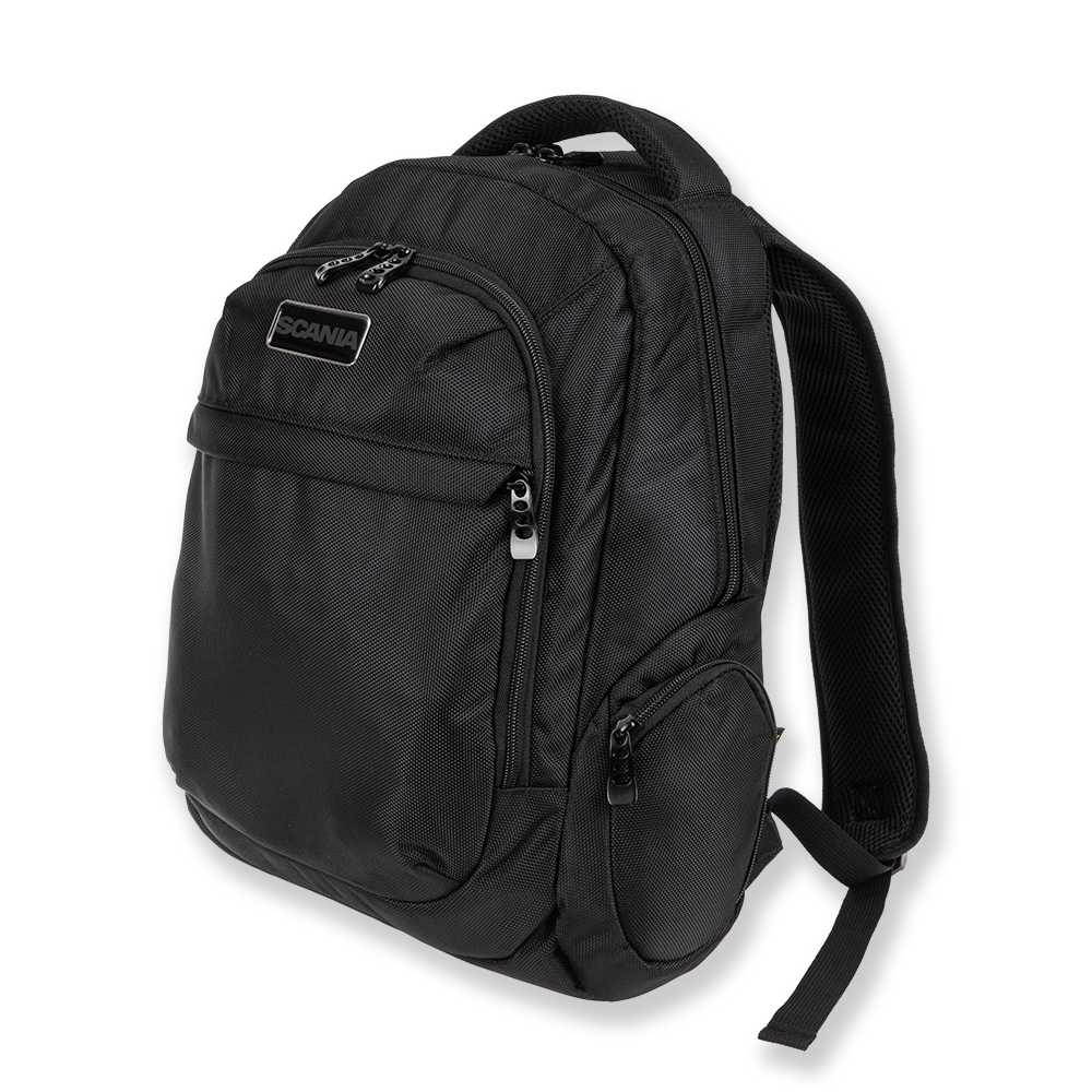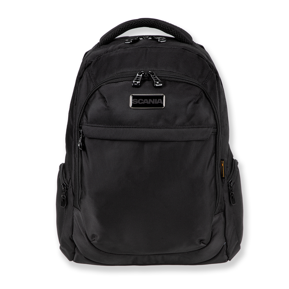 Details: A high-quality robust backpack with various pockets and compartments. Fits laptop up to 15", pocket with organiser features. Two-way zippers for easy access, padded back and shoulder straps, padded handle for comfort and covenience. Branded with Scania Wordmark on a metal emblem.
