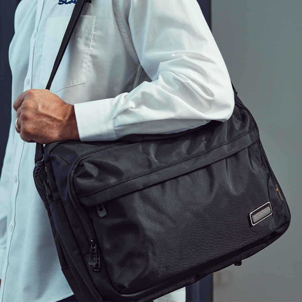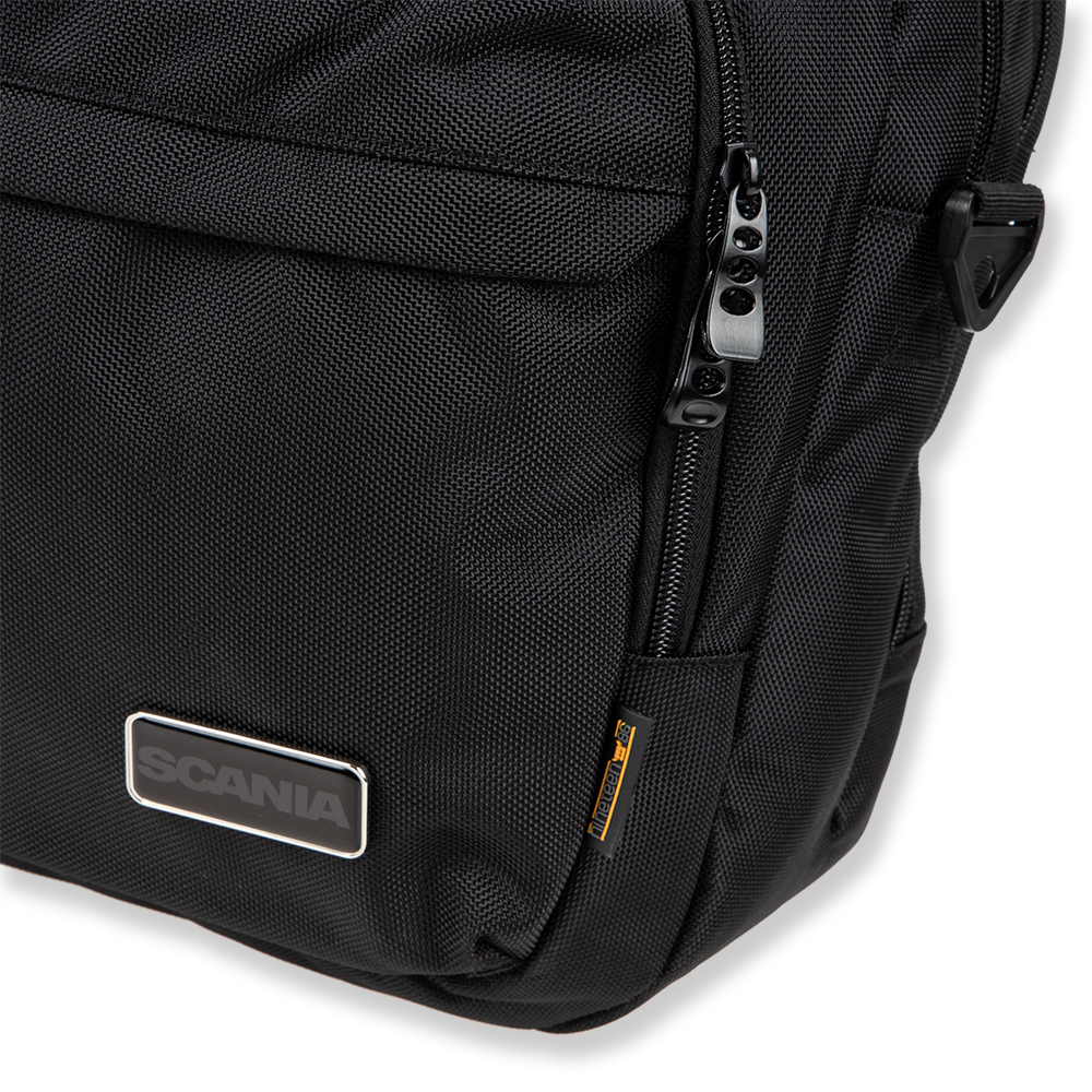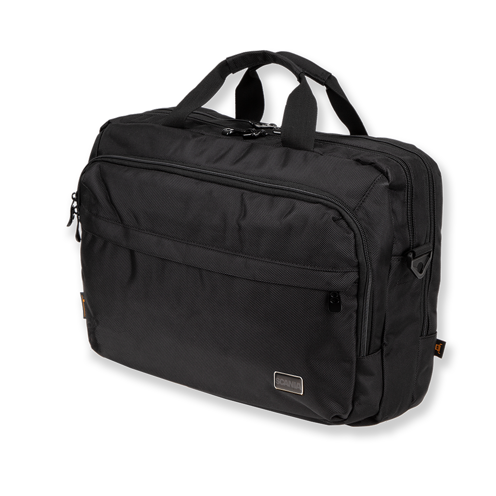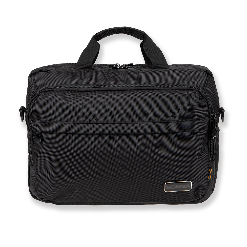 Details: A high-quality and durable laptop bag with various pockets and compartments. Fits laptop up to 15", pocket with organiser features. Two-way zippers for easy access, adjustable and removable shoulder strap. Branded with Scania Wordmark on a metal emblem.