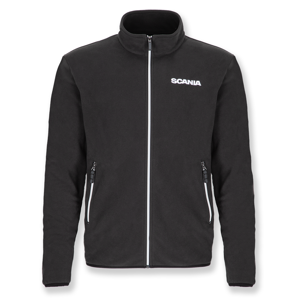 Details: Scania wordmark embroidery on chest, colour contrasting zippers in nylon and rubber puller at front.