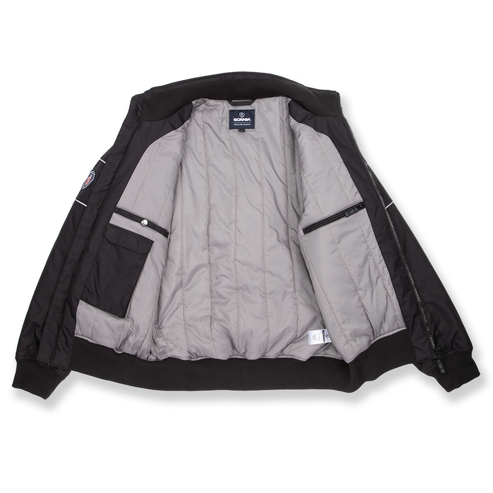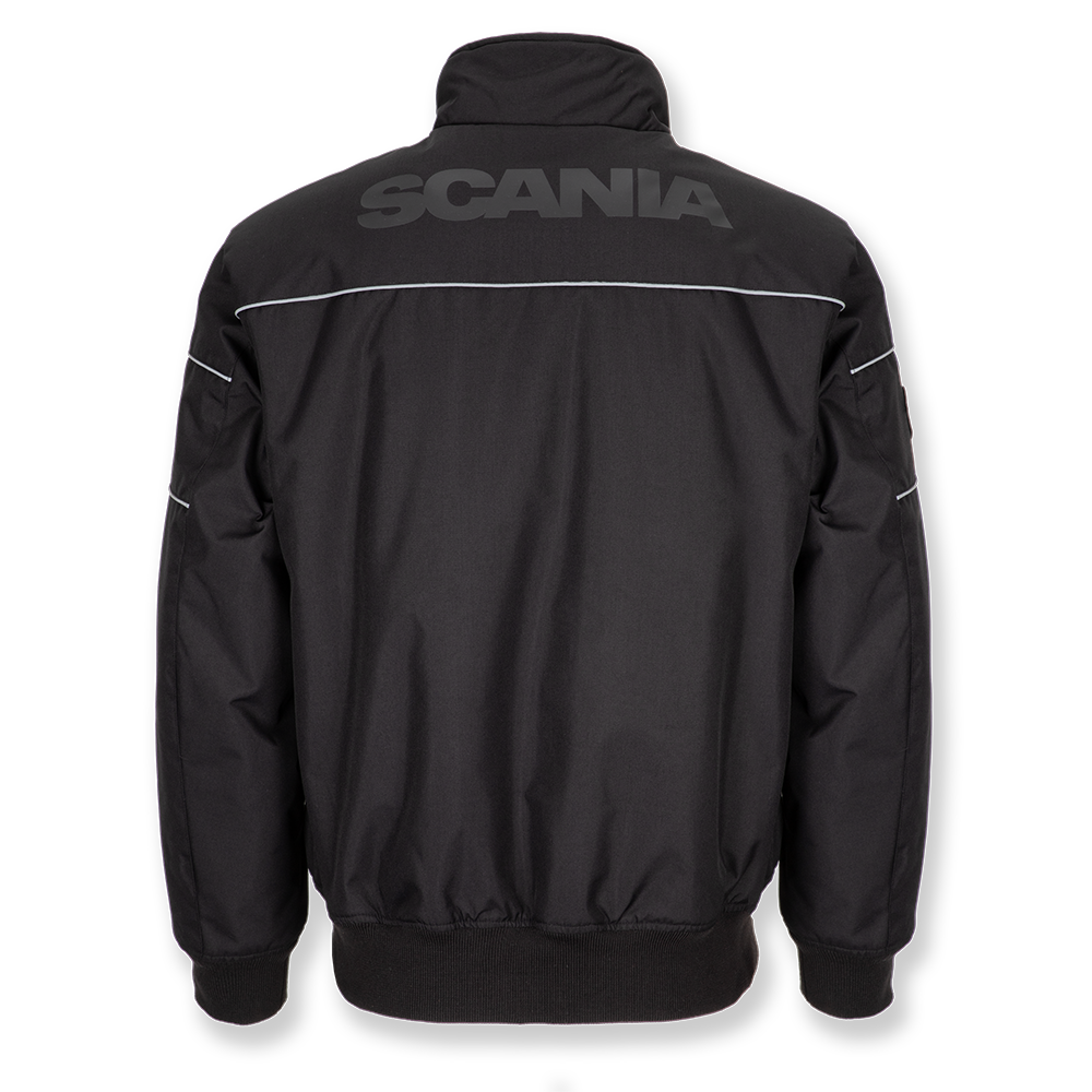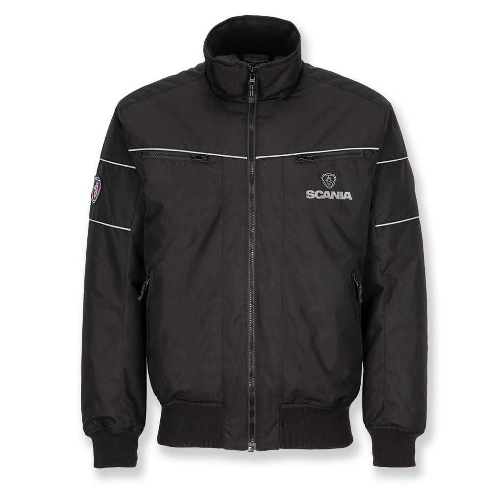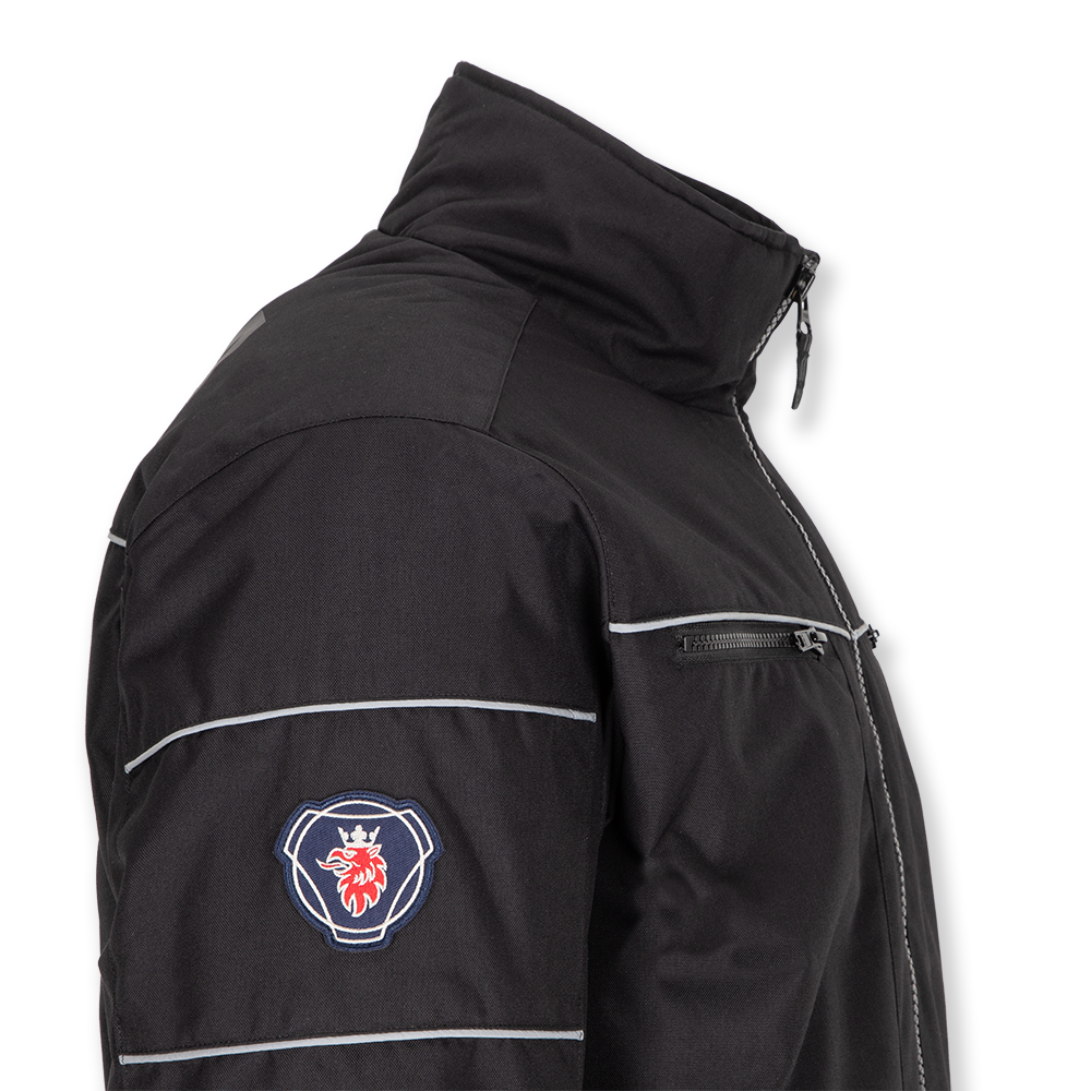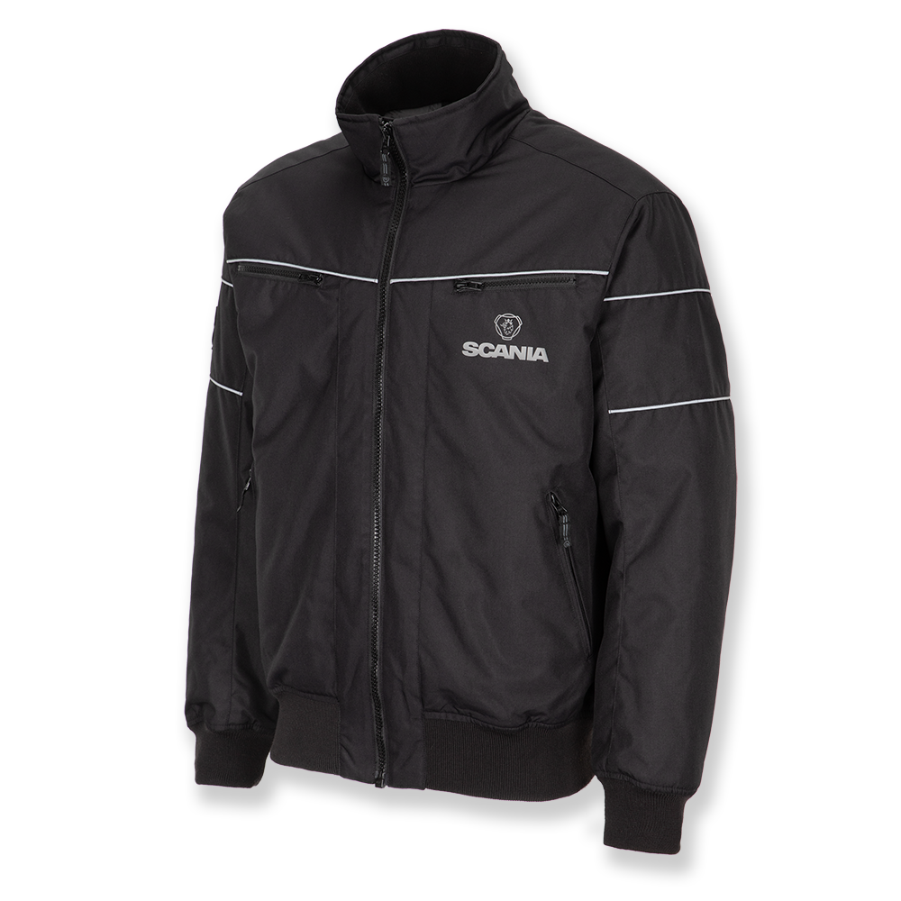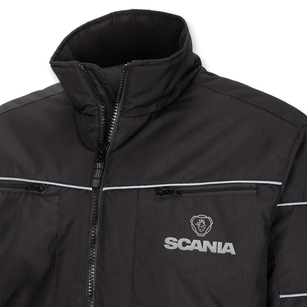 Details: Scania wordmark print on back, Scania logotype print on chest. Reflective piping on back and front and on sleeves. Robust zippers and pockets with zip closure outside and inside.