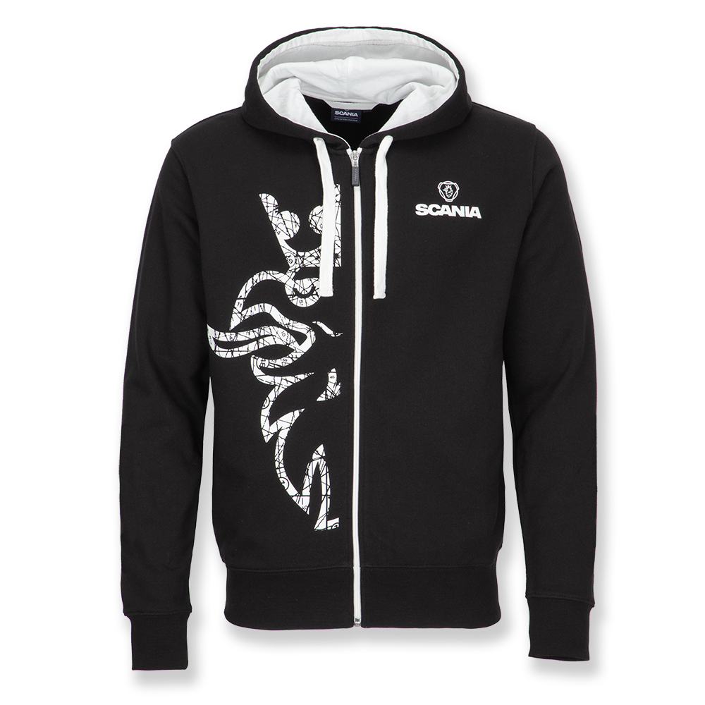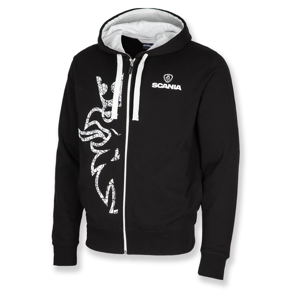 Details: Colour contrast detailing, Scania logotype print on chest and large Griffin print on front. Inside unbrushed. Pockets in side seam