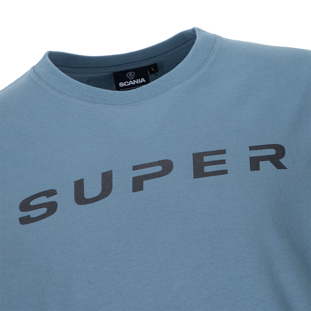 Details: Featuring a SUPER print across the chest and Scania Wordmark along the back. Finished with a jerseytape from shoulder to shoulder with heavy chainstitch at the back.