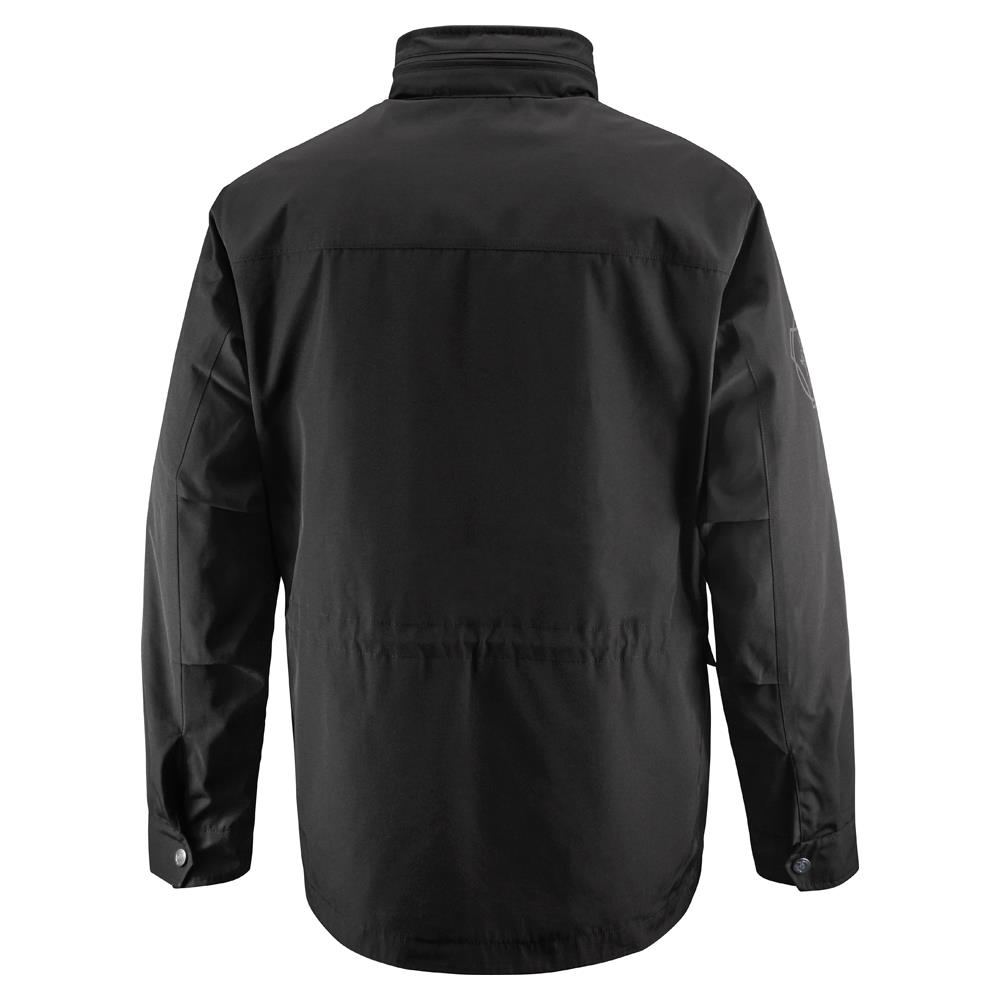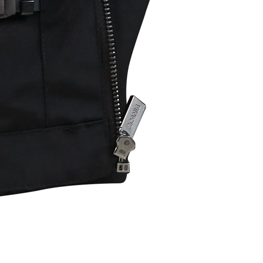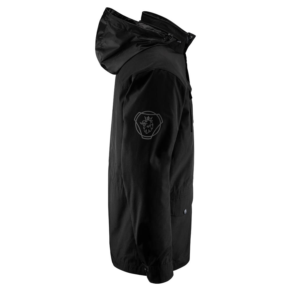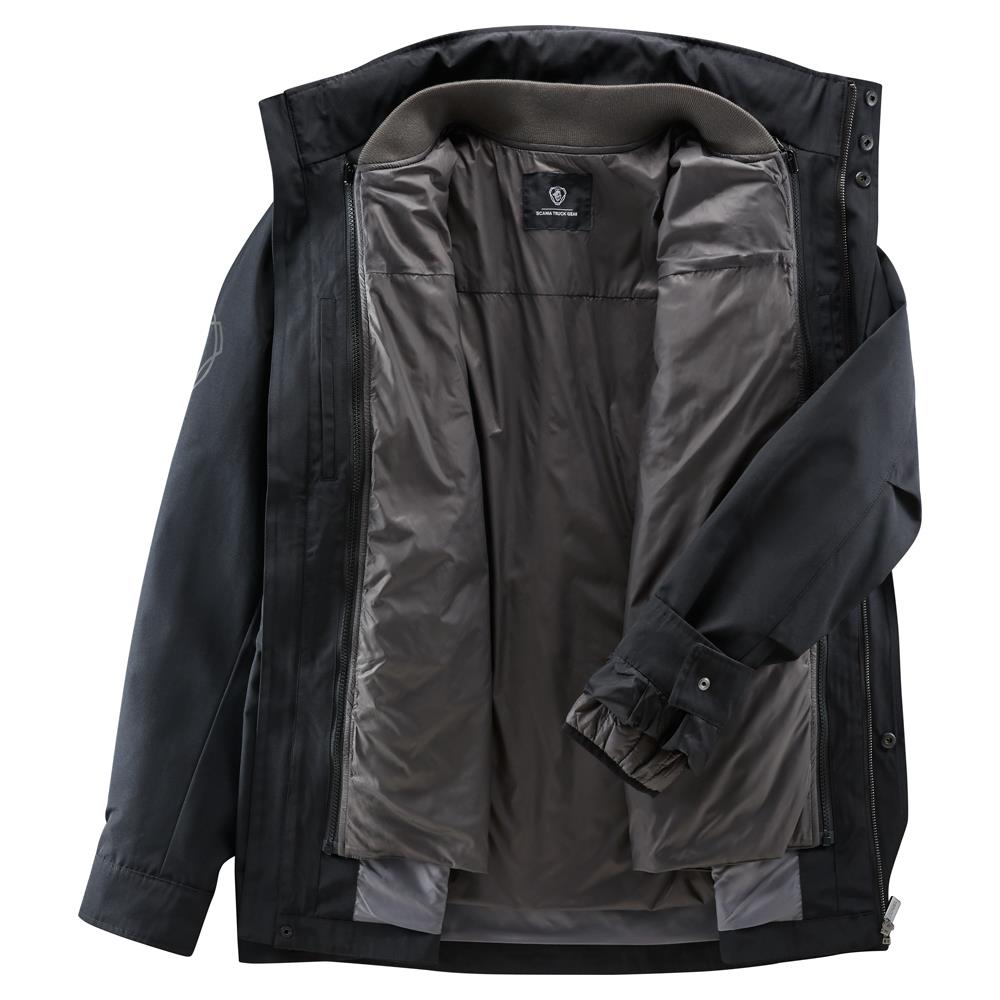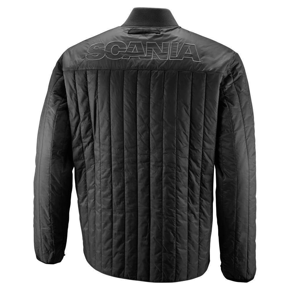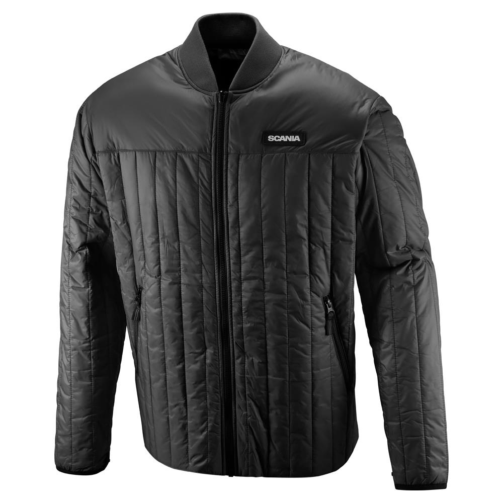 Details: Outer jacket: Scania wordmark on chest, reflective Scania symbol on sleeve, hidden hood in collar, pockets with Scania symbol snap buttons, metal zipper. Inner jacket is quilted and light-padded. Scania wordmark on back yoke.