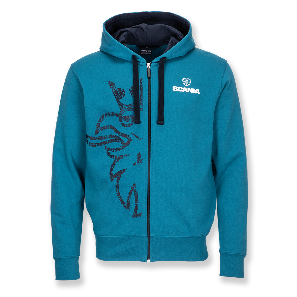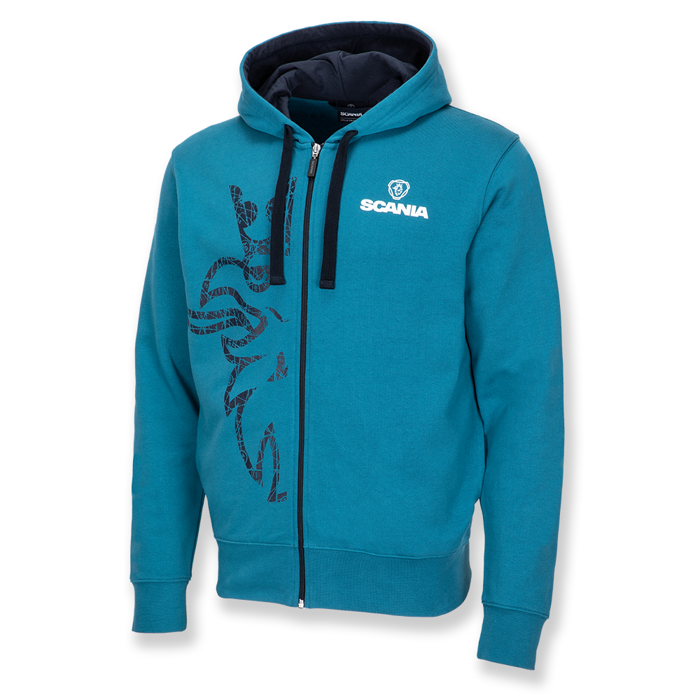 Details: Colour contrast detailing, Scania logotype print on chest and large Griffin print on front. Inside unbrushed. Pockets in side seam