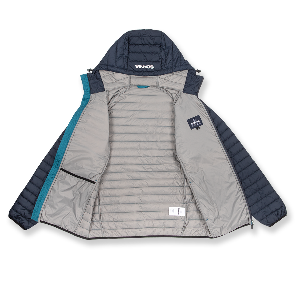 Details: Scania wordmark print in reflective silver on hood. Griffin rubber badge on chest with colour contrasting sleeves, zipper and lining. Front zipper in nylon with logo puller and hidden zipper pockets.