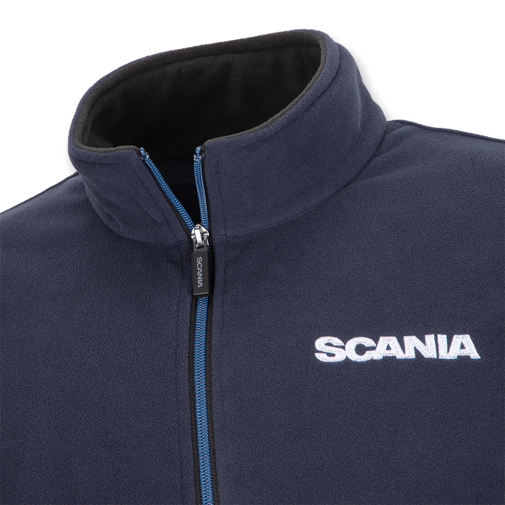 Details: Scania wordmark embroidery on chest, colour contrasting zippers in nylon and rubber puller at front.