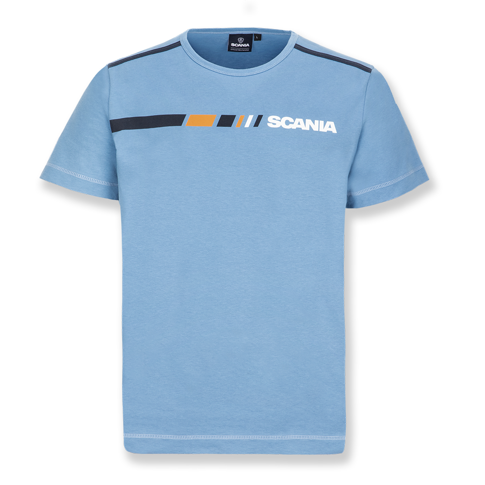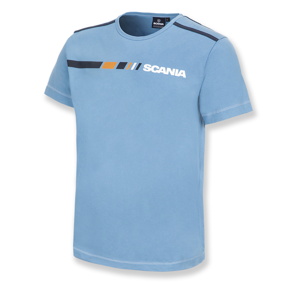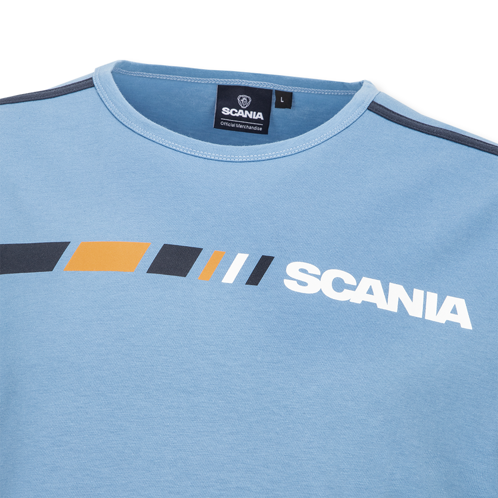 Details: T-Shirt with a block stripe and Scania Workmark across the chest. Contrast and heavy chainstitch at the shoulders.