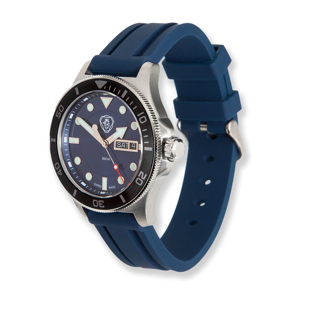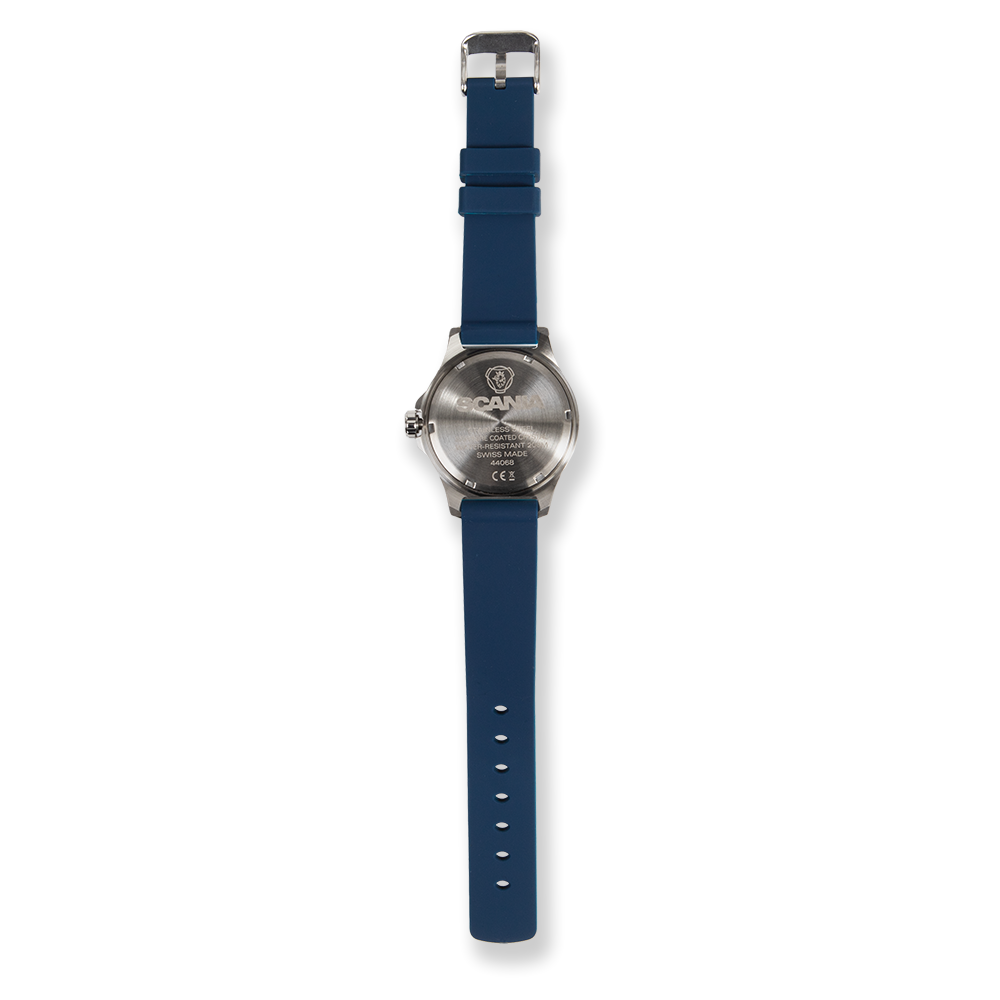 Scania Diver Watch with a comfortable blue rubber strap and the Scania symbol on the face of the watch.