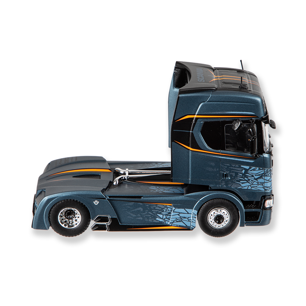 Details: Designed by Scania together with Svempa, Frostfire is the latest of Sven Erik Bergendahl's iconic builds. Featuring an icy blue and fiery orange duo with a pattern that mimics shattered ice, this latest showstopper is based on the Scania V8; complete with deft touches, signature styling elements and a razor-sharp attention to detail that you could only expect from a Svempa build.
