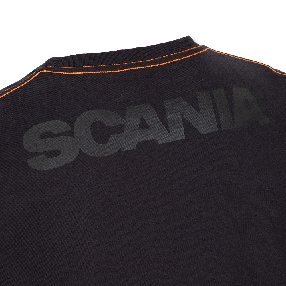 Details: XT print on front with visible heavy chain stitches in contrasting colour on the back. Scania wordmark on back.
