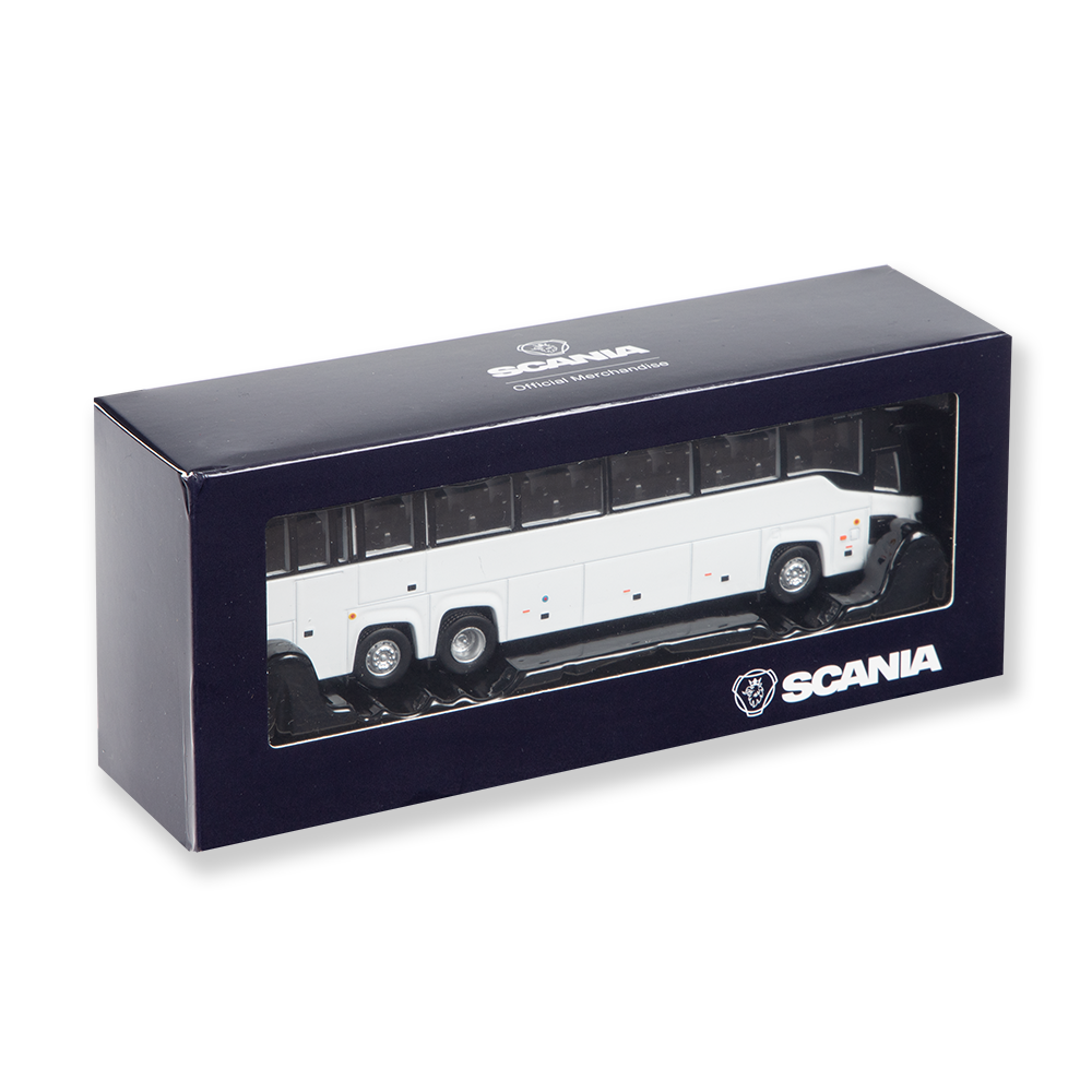 This 1:87 Scale model is an exact replica of the Scania Touring of the new generation, complete with detailed finishes and a smooth ice-white body.