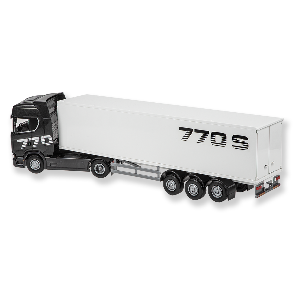 Details: Scania 770 S 4x2 tractor with box semitrailer.